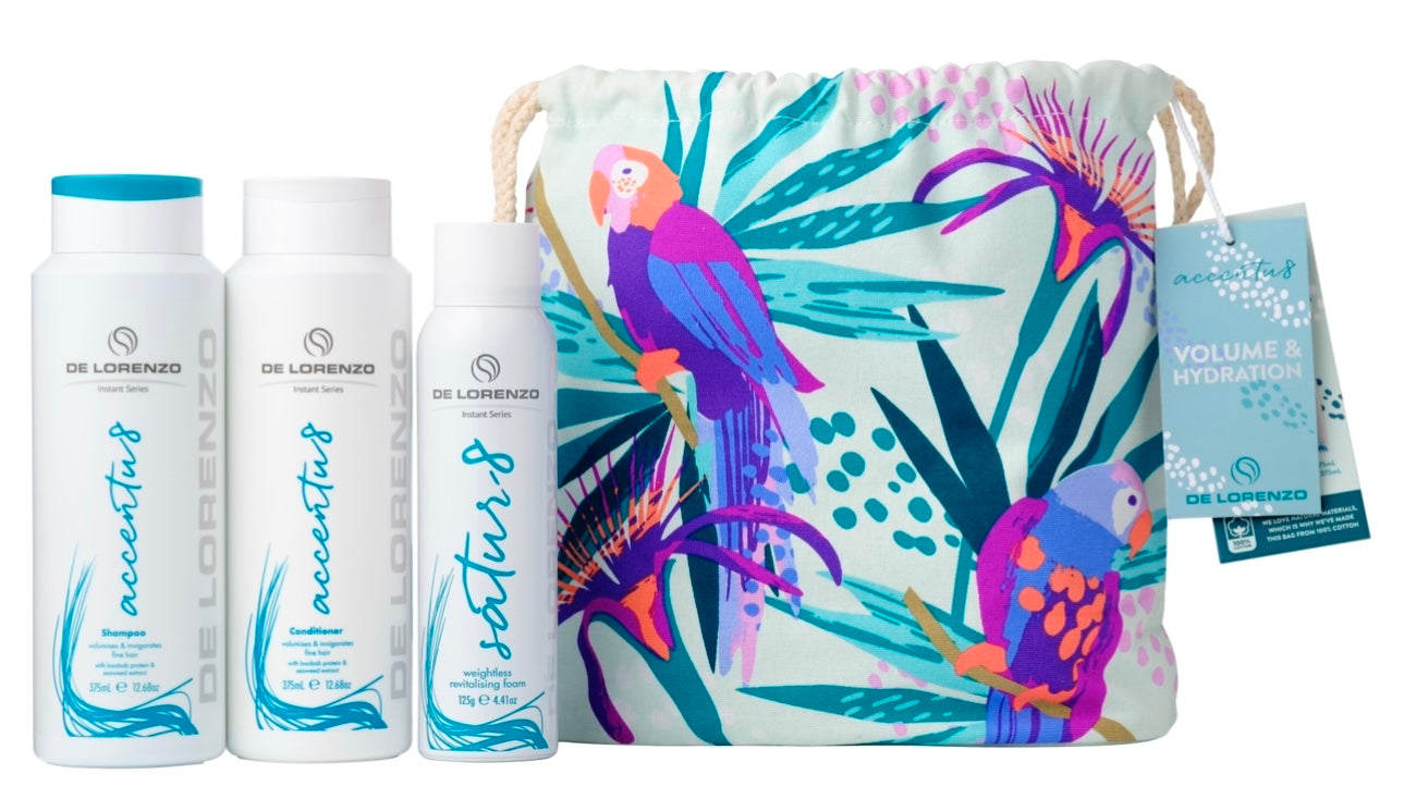 Accentu8 Shampoo gently cleanses and invigorates fine hair with an organic body building formula, leaving it with brilliant volume and shine. Accentu8 Conditioner provides lightweight conditioning and invigorates fine hair while delivering a veil of film formers to thicken hair for brilliant volume and shine. Contains Baobab Protein, Seaweed and Ginseng.